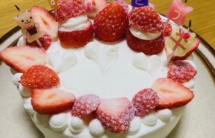 今月はシェフのバースデー月 看板娘がケーキにデコレーションしてお祝いしました …
